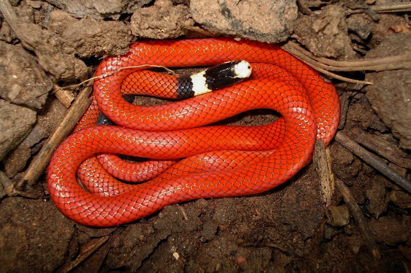 Cobra alaranjada. Uma Cobra de Cor Vermelha e Extremamente Venenosa. Possui uma grande mancha dorsal. Alimenta-se de pequenos répteis como anfíbios e outras cobras.